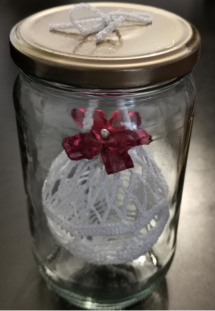 Ou celles qui peuvent être faites en 1 tenant, sont amidonnées sur un ballon gonflable, séchage 24h, extraction du ballon sans déformer la boule, puis pose de l’anse.